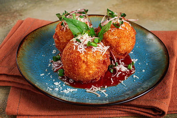 The name “Arancini” comes from the Italian word “arancia”, meaning “little orange,” because of their round shape and golden color. Originating in Sicily around the 10th century, these rice balls were created as a way to use leftover risotto transformed into something truly spectacular.